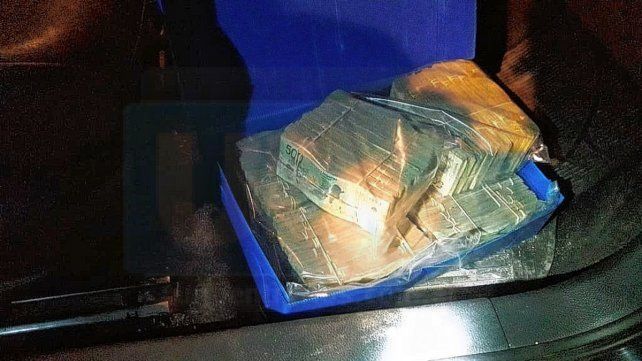 Al realizarse el control primitivo del rodado y su documentación, se observó que un envoltorio se hallaba en el piso del automóvil junto al conductor evidenciandose una cantidad importante de dinero en efectivo.