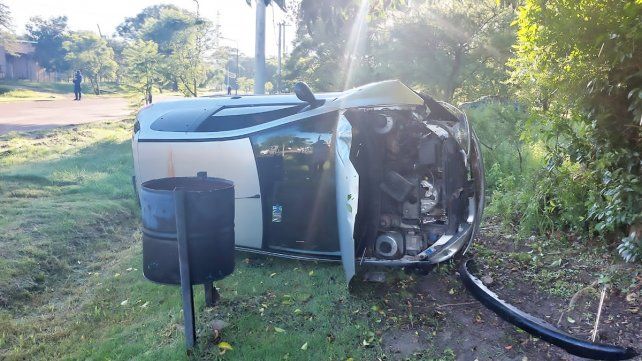 Por motivos que se tratan de establecer el auto que circulaba en sentido este/oeste derrapó hacia la banquina, chocó un árbol y terminó volcado sobre el lateral derecho.