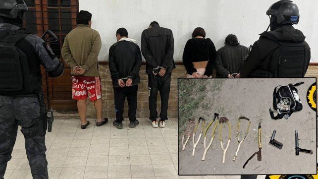 Además, se logró el secuestro de varios elementos utilizados en el ataque, entre ellos: un rifle de aire comprimido; tres armas de fabricación casera (tumberas); cinco gomeras, una de ellas acompañada de un bolso con varias piedras; dos caños de gas, un rebenque, un machete y tres palos de madera.