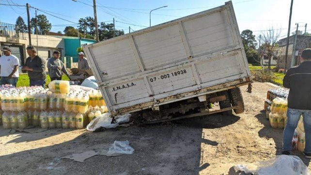 El rodado quedó con la rueda trasera hundida en el pozo, que estaba señalizado solo por hojas y ramas. Cuando el conductor intentó pasar, el vehículo se hundió y esto provocó que todos los packs de bebidas cayeran hacia el lateral izquierdo; aplastando a un joven que iba en la parte trasera del camión.