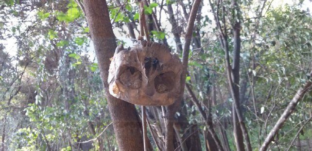 Macabro: encontraron un cráneo calzado sobre un árbol