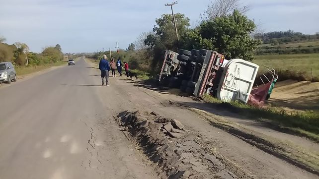 Según los primeros datos el conductor lesionado, identificado como Emiliano Leonel Schechtel, domiciliado en Aldea Spatzenkutter, conducía el camión con acoplado en dirección sur por el camino alternativo que une María Luisa con Etchevehere, cuando tomó por la banquina por el mal estado del camino. Al atravesar un montículo perdió el control del rodado que terminó volcando. La carga completa de soja quedó distribuida en el camino.