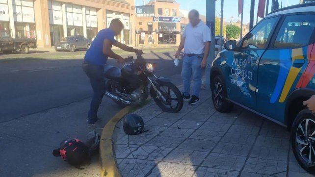 Allí chocó de costado contra un auto que estaba estacionado, al que le rayó parte de la carrocería y le arrancó el espejo lateral izquierdo. Producto del impacto el conductor cayó unos metros más adelante sobre el asfalto.