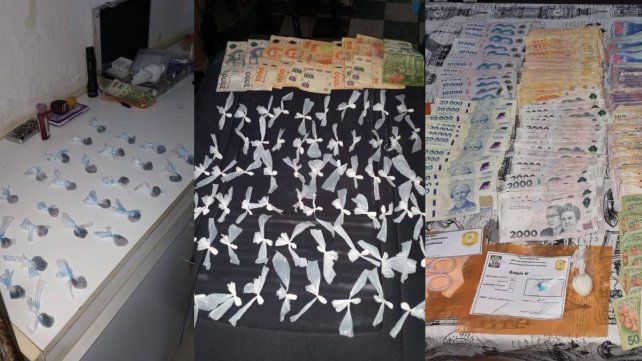 -Más de 800 mil pesos en efectivo, presuntamente producto de la actividad ilícita investigada, balanza de precisión, recortes de nylon y otros elementos utilizados para el fraccionamiento de estupefacientes.