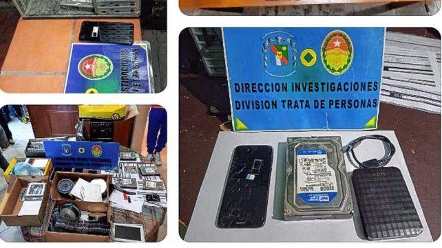Personal de la División Trata de Personas, dependiente de la Dirección Investigaciones, procedió a dar cumplimiento a oficios del Juzgado de Carola Bacaluzzo, el cual disponía el allanamiento en seis viviendas ubicadas en distintas zonas de la ciudad de Paraná, donde se procedió al secuestro de 9 teléfono de distintas marcas, 7 discos rígidos, una memoria extraíble, 5 CPU, 4 netbooks, 3 discos portables, 1060 cd_dvd, 2 pendrives, dos cámaras digitales, 6VHS, la suma de $ 2.000.000, anotaciones varias y 1 arma de fuego tipo carabina 22.