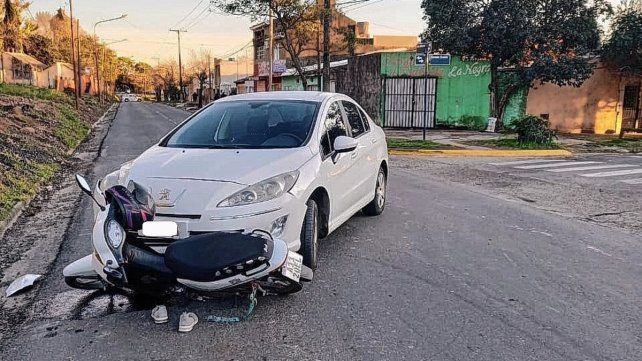 En este marco, pasado el mediodía de este martes chocaron allí una moto Guerrero Trip de 110 cc., conducida por una joven de 23 años, y un auto Peugeot 408, guiado por un hombre de 46. La primera circulaba por calle Alvarado y el segundo por Tomás Guido. La moto terminó debajo del auto y su motociclista herida en el suelo. En seguida llegó una ambulancia que la trasladó al hospital San Martín, e intervino el personal policial de la comisaría Sexta.