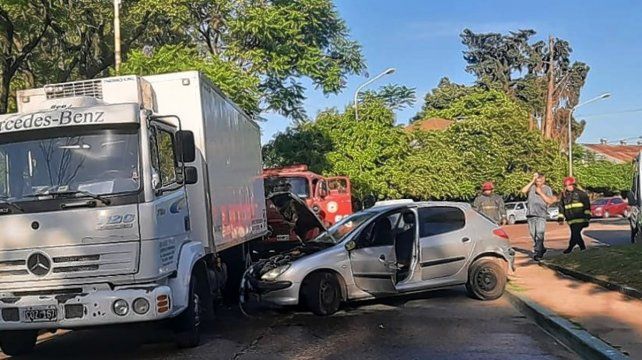 El camión de transporte de productos alimenticios estaba estacionado correctamente sobre Racedo. El Peugeot dobló a gran velocidad y terminó impactando en la caja del camión mencionado.