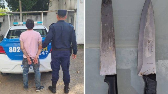 Por tal motivo, le solicitó que se retire y este se negó, se atrincheró en su habitación con dos cuchillos y amenazo a los que estaban allí. Los funcionarios policiales intervinieron y lo redujeron. Por disposición del fiscal fue detenido y secuestraron los cuchillos.