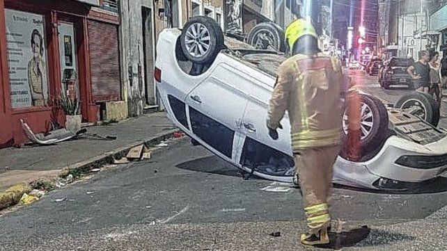Dos autos protagonizaron un siniestro vial en pleno centro de Paraná tras los festejos por la tercera estrella alcanzada por la Argentina en la máxima competición de fútbol. Uno de los vehículos quedó con las ruedas hacia el cielo y el conductor dio positivo de alcohol.