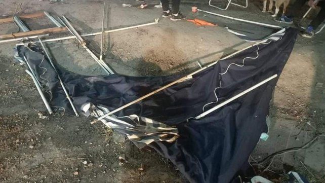 Dos unidades de los bomberos trabajaron en el lugar, principalmente ayudando a recomponer la precaria estructura que fue destruida por el vehículo., entre ellos una parrilla, una mesa, un gacebo y los recipientes con comida.
