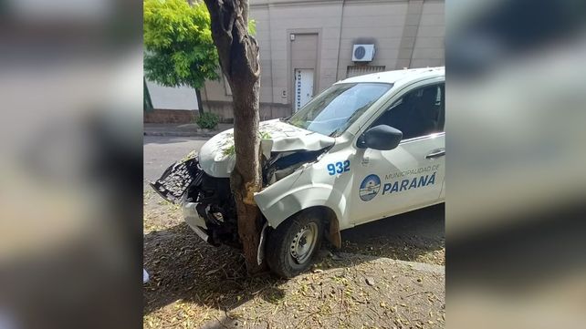 El incidente ocurrió en calle Montevideo. El vehículo de la Municipalidad de Paraná resultó seriamente dañado y no hubo heridos.