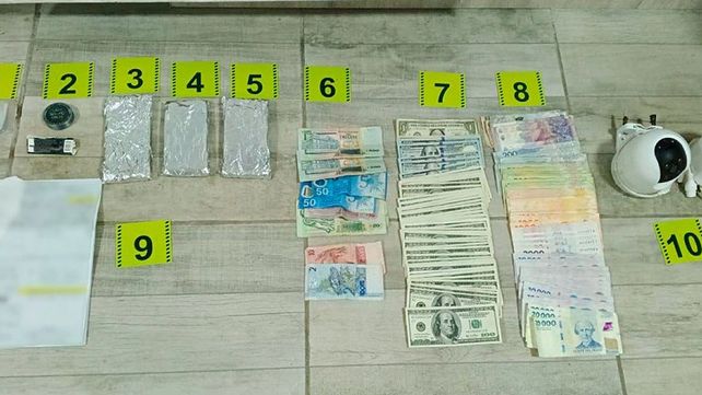 Con autorización del Juzgado Federal de Concordia, los efectivos del Escuadrón y personal de otras unidades dependientes de la Agrupación V Entre Ríos se desplegaron hacia los domicilios para ejecutar las medidas judiciales, donde incautaron 228 ampollas de diferentes opioides (como fentanilo, morfina, entre otras), 915 gramos de cocaína, marihuana, un revólver, municiones de diferentes calibres, 3.928.890 pesos argentinos, 9.162 dólares, 1.960 pesos uruguayos, 12 reales, rodados, 10 celulares, cámaras de seguridad, elementos de corte y estiramiento de estupefacientes como así también documentación importante para la causa. Los uniformados, además, detuvieron a un hombre y otras seis personas quedaron supeditados a la causa.