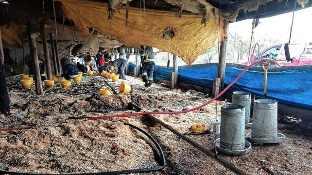 El incendio se originó en la madre de la granja avícola, el lugar los pollos protegidos del frío en sus primeros días de vida. Allí había 6.500 animales y luego de que fue sofocado el incendio solamente quedaron vivos 1.000.