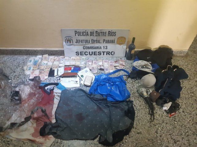 En el operativo se secuestró el Chevrolet Corsa, con pertenencias del damnificado, dos remeras con sangre, tres teléfonos celulares, un GPS, una cartera color azul con las pertenencias denunciadas por la damnificada, un cuchillo táctico, una réplica de arma de fuego y la suma de 2950 pesos.