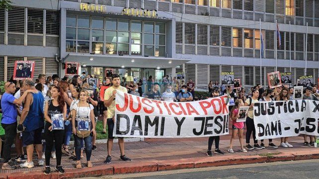 Con pancartas que expresaban el pedido de justicia por Dami y Jesi, familiares, amistades y allegados a los jóvenes se concentraron en las puertas de tribunales. El grupo ocupó toda la explanada y la vereda de la sede del Poder Judicial entrerriano.