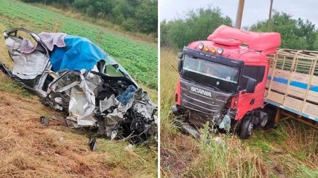 El choque fatal se produjo en el kilómetro 519 de la Ruta 12, entre un camión jaula y un automóvil en el que viajaban las víctimas.