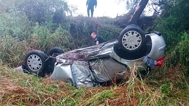 En el mediodía del miércoles, bajo una intensa lluvia, un automóvil derrapó y volcó en la Ruta 12, a la altura de Sauce Montrull, departamento Paraná. Como consecuencia del siniestro vial, el conductor quedó atrapado en el habitáculo del vehículo y fue rescatado por bomberos y personal policial.