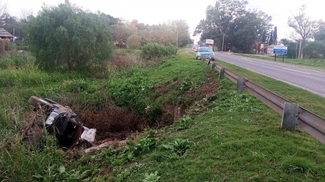 Un automóvil Fiat Duna Weekend despistó hacia la banquina y cayó en un aliviador de la Ruta Nacional 12, frente al Aeroclub, en la zona de Colonia Avellaneda.