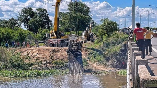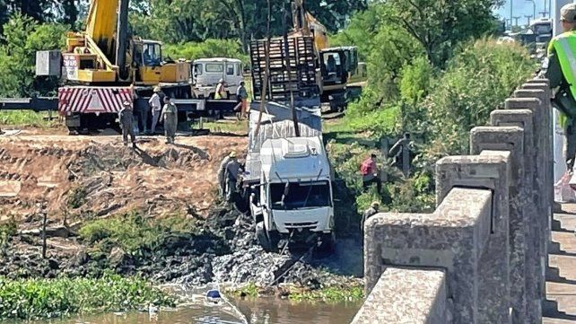 Ruta 168: llegó la grúa para sacar el camión del agua y buscan al chofer