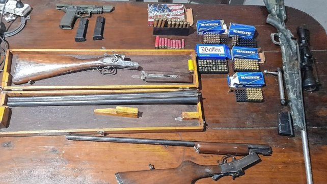 Luego, para profundizar la averiguaciones en torno al hecho y lograr dar con las armas utilizadas, el personal de la comisaría 12° de Paraná llevó adelante un allanamiento en una vivienda ubicada en calle Río de los Pájaros, en busca de todo tipo de arma de fuego y/o cartuchería. Fue notificado de la medida judicial un hombre de 34 años. El procedimiento fue positivo y se informó que se logró incautar: una escopeta calibre 28, una escopeta doble caño calibre 16, una pistola calibre 9 milímetros, con dos cargadores con capacidad para 17 balas, y un fusil con mira colocada. Además de las cuatro armas, se secuestró una gran cantidad de cartuchería calibres 28, 36, 16, 7 y 9 milímetros, así como cajas y blísteres con numerosas vainas servidas. Entre las balas halladas, había 13 de 9 milímetros de punta hueca. No se dispuso la detención del hombre que tenía en su casa este arsenal.