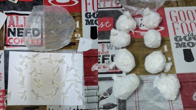 Durante los procedimientos se incautaron: 297 envoltorios de nylon conteniendo cocaína, preparados para la venta; envoltorios de marihuana, 940.000 pesos en efectivo, siete teléfonos celulares y una tablet, que serán sometidos a pericias, recortes, precintos y prendas y elementos utilizados para el fraccionamiento y acondicionamiento de la droga.