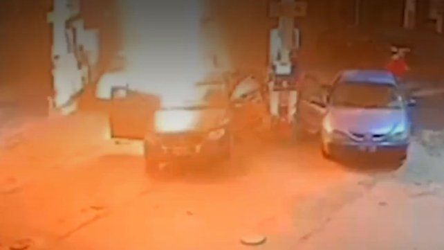 Una cámara de seguridad registró el momento en el que el vehículo comenzó a incendiarse, lo que generó pánico entre los otros usuarios que se encontraban cargando nafta, como así también en los playeros.