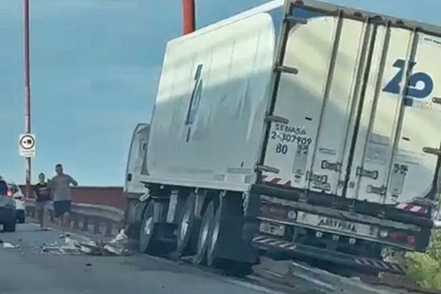 Un camión chocó y estuvo a punto de caerse al vacío en el complejo Zárate Brazo Largo. El siniestro ocurrió este miércoles, y el vehículo rompió gran parte de la estructura de contención y quedó a pocos centímetros de caer desde la parte más baja del puente Urquiza.