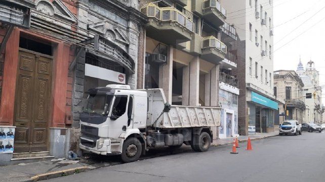 En el centro de Paraná un camión impactó contra una pared este martes por la tarde. Se habría debido a un desperfecto mecánico.