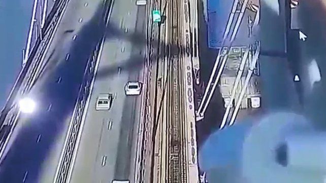 En el video de las cámaras de seguridad del complejo ferrovial quedó registrado el momento en que sobre el puente Urquiza se detiene un vehículo blanco del cual se bajan dos personas que comienzan a caminar hacia la barandal del puente, sorteando la vía del ferrocarril, para luego arrojarse al mismo tiempo.