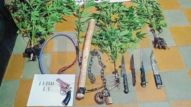 Además, se secuestró 1 arma de fuego calibre 22, con 8 proyectiles completos en el tambor; 4 armas blancas, dos de ellas de fabricación casera; 1 palo en forma de bate de beisbol (fabricación artesanal), con mango encintado, 1 cadena con un candado y un piñón de bicicleta en el extremo; 1 cable subterráneo trenzado en un extremo. También se incautaron 9 plantas de marihuana.