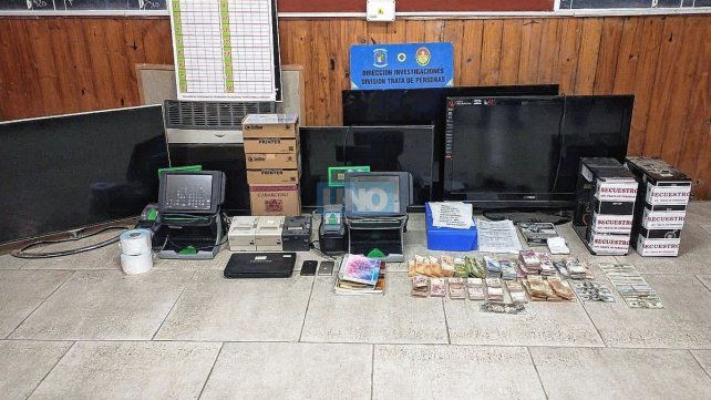- En calle Gutiérrez, donde funciona el “Jockey Club de Villa Elisa”. Allí se secuestraron tres televisores; impresiones varias con indicaciones luego de hacer la apuesta; fotocopias de programas hípicos; tickets varios relacionado a las apuestas hípicas; Un CPU; varias maquinas ticketeras oficiales del hipódromo de San Isidro; una notebook; 1.480.550 pesos argentinos y 5.790 dólares estadounidenses.