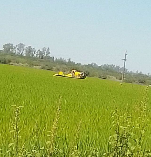 Un avión aeroaplicador golpeó un tendido eléctrico y se precipitó a tierra. Ocurrió en la zona rural de Villa Mantero