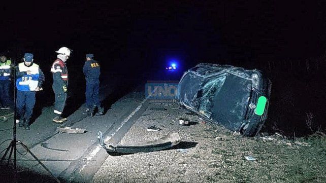 El personal policial encontró un automóvil Volkswagen Gol, de color gris, que estaba de costado apoyado sobre su lado derecho y totalmente destruido. Según se informó a UNO, de la oscuridad apareció un hombre que estaba en estado de shock, indicando que en el auto se trasladaban cuatro personas, que fueron despedidos del rodado.