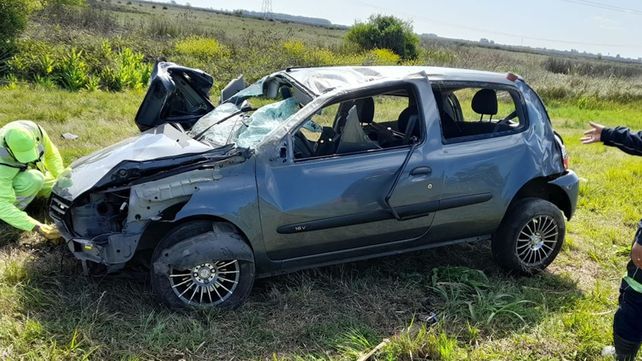 El Renault Clio despistó, dio varios tumbos y terminó en la banquina contraria. Una mujer que viajaba como acompañante falleció en el vuelco