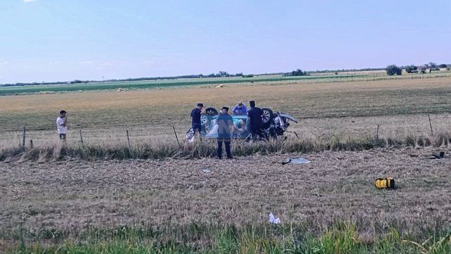 El rodado quedó volcado en el interior de un campo. El Toyota terminó muy dañado, lo que se presupone que habría transitado a alta velocidad.