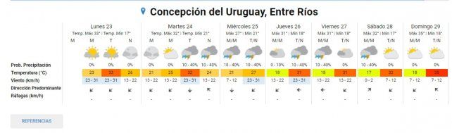 En Concepción del Uruguay hoy estará despejado con una máxima que llegará a los 33° y para los días subsiguientes si bien continuarán las altas temperaturas de 31° y 32° se estima que mañana martes por la noche llegaría la inestabilidad con tormentas aisladas, las cuales se extenderán durante toda la semana.