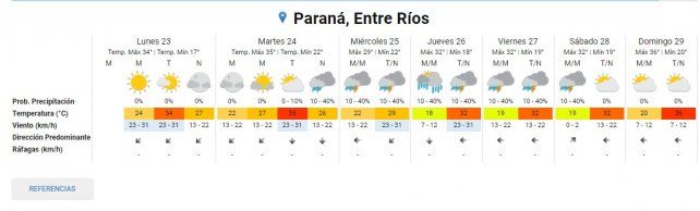 De acuerdo a la información brindada por el Servicio Meteorológico Nacional (SMN) para esta última semana de noviembre se estima que las condiciones climáticas desmejorarían en Entre Ríos el día miércoles con lluvias y tormentas. En principio, en Paraná hoy estará ligeramente nublado y la máxima pronosticada es de 34°.