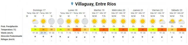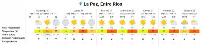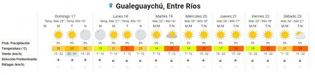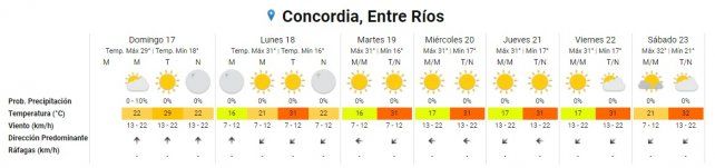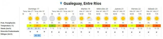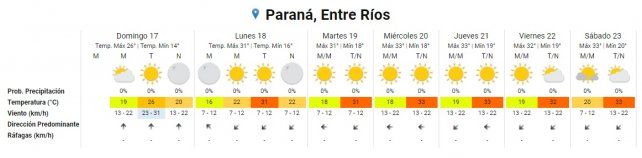 A continuación el pronóstico extendido en localidades del norte, sur, este, oeste y centro de Entre Ríos: