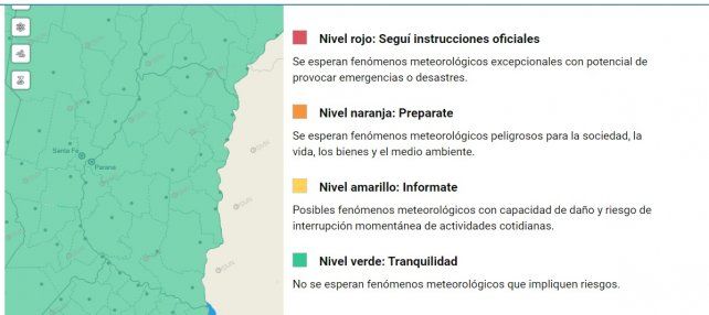 Además, la provincia salió del alerta del Servicio Meteorológico Nacional en el que se encontraba este sábado. Así se encuentra el diagnóstico del organismo nacional para Entre Ríos este domingo: