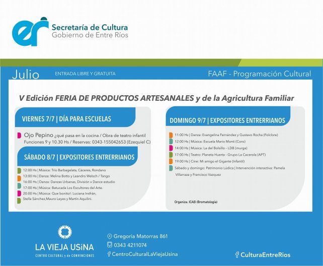 Mañana, también en La Vieja Usina, las propuestas culturales comenzarán a las 12 con música y danza en vivo.