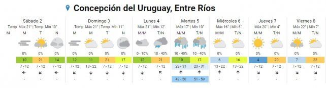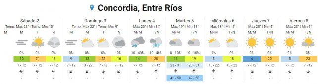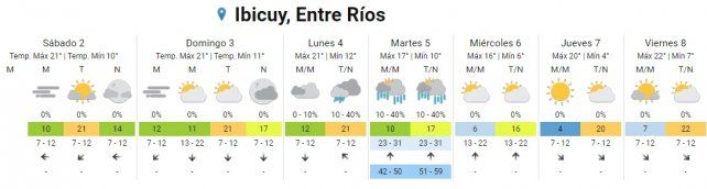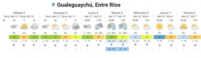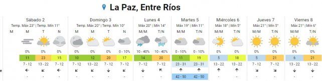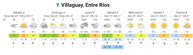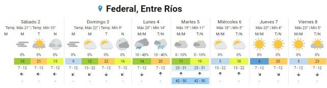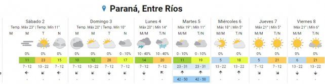El lunes hay pronóstico de lluvias aisladas durante toda la jornada con temperaturas de entre 14º C y 20º C.