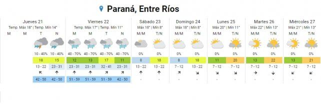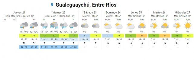 Para la zona se espera que este jueves se presenten tormentas y lluvias aisladas con temperaturas de entre 15º C y 18º C.