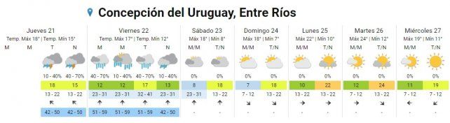 La inestabilidad se mantendrá en la región por lo menos hasta el día viernes 22 de mayo. Se esperan valores de precipitación acumulada entre 50-70 mm, pudiendo ser superados en forma localizada.