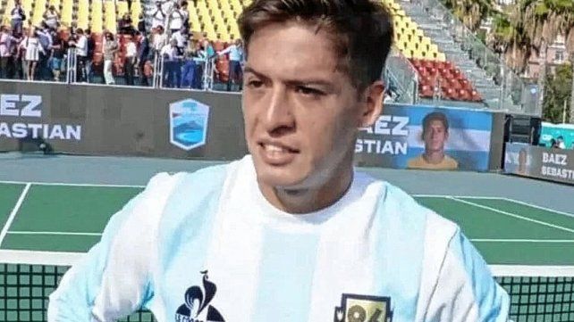 Al finalizar el encuentro, Báez dio su palabras luego de la victoria ante el italiano y se puso la remera de Argentina de Diego Armando Maradona e hizo la entrevista con la indumentaria de la Selección.