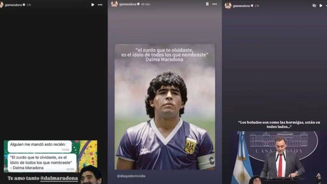 En otra historia, citó uno de los dichos de su hermana: “El zurdo que te olvidaste es el ídolo de todos los que nombraste”. Y en una tercera historia, volvió a replicar a Dalma y sumó: “Te amo tanto”.