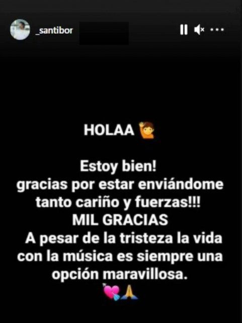 "Hola, estoy bien. ¡Gracias por estar enviándome tanto cariño y fuerzas! Mil gracias", comenzó el mensaje del artista oriundo de Concordia, provincia de Entre Ríos.