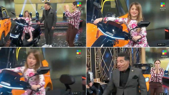 Mientras Iudica estaba hablando de las cualidades de la moto, la niña de 7 años aceleró el vehículo asustando a todos los presentes. "Agarrala", pidió el conductor del programa ante los gritos de Callejón.