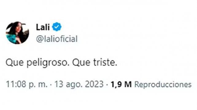 Y horas más tarde, cuando se conocieron los primeros resultados que dieron como contundente ganador a Javier Milei, Lali volvió a expresarse. “Qué peligroso. Qué triste”, planteó la también actriz en la misma red social, manifestando cierta preocupación ante el nuevo panorama que se abre a partir de ahora en la política nacional.
