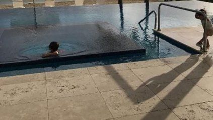 Antonela Roccuzzo también hizo pública la luna de miel al compartir en su cuenta de la red social una foto de Thiago y Mateo disfrutando de la pileta del hotel, a escasos metros del mar. "Honeymoon en familia", escribió la rosarina.
