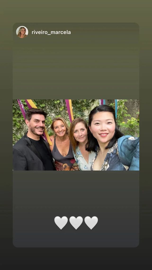 Se trata de una postal donde la madre de la actriz, su agente de prensa, su cuñada, además de su amigo Juanma Cativa, aparecen vestidos de fiesta, sonrientes, y agrega tres corazones en la imagen.
